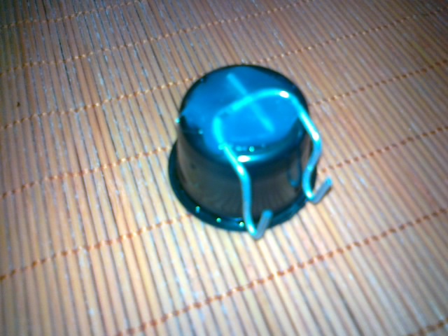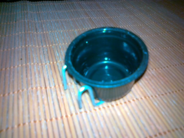 À referida capsula depois de lavada apenas lhe colei, com cola quente, um arame dobrado para poder engatar nas grades da gaiola.